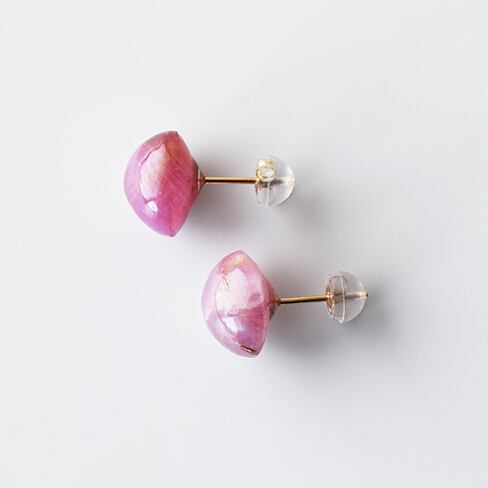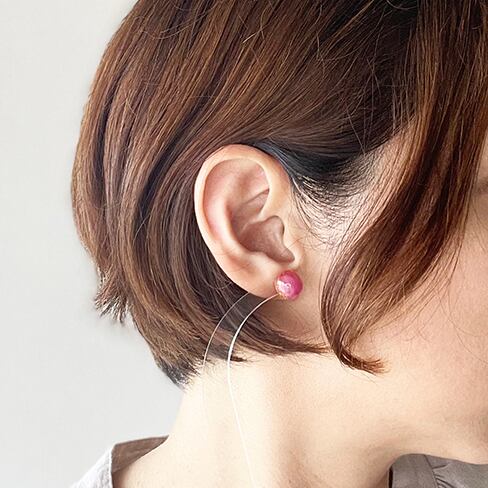 たっぷりとしたボリューム感と濃淡のあるピンクが印象的なサファイアのピアス。