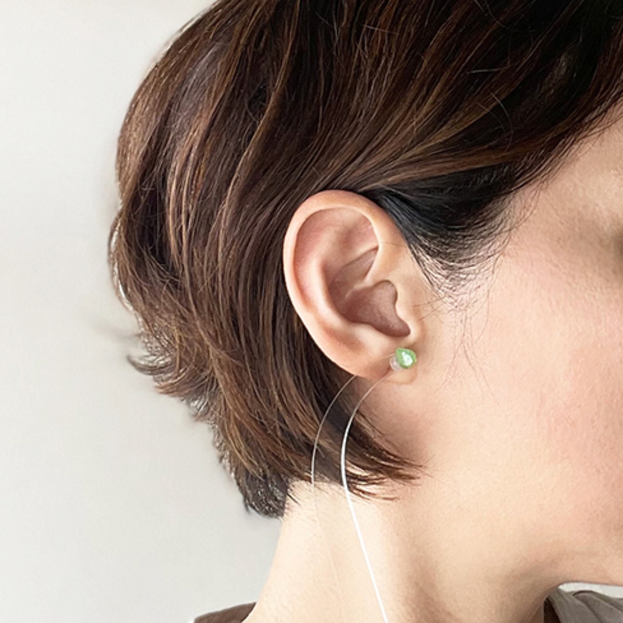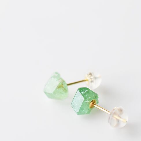 さわやかなグリーンの色合いを楽しめるツァボライトガーネットの原石ピアス。