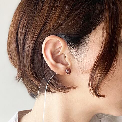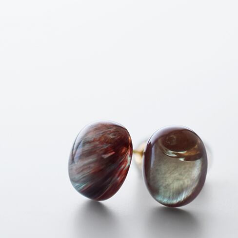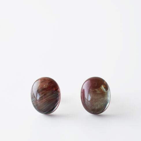 褐色とブルーが混ざり合い神秘的な模様を描くチベットアンデシンのピアス。