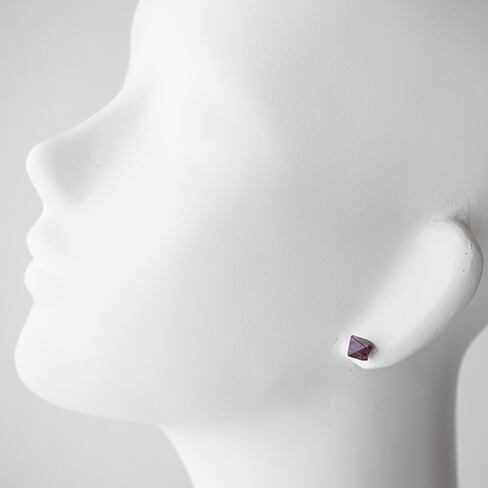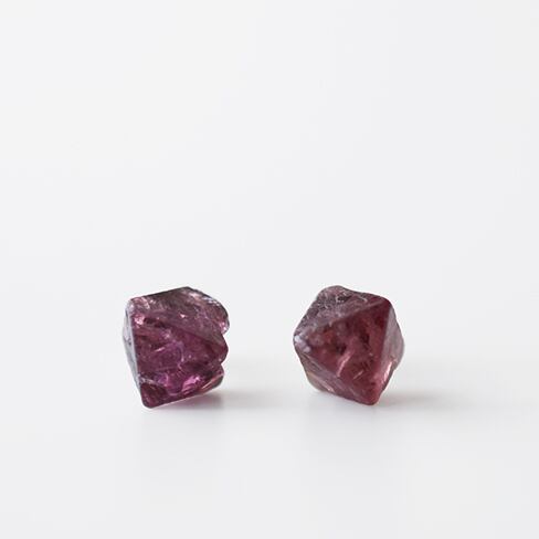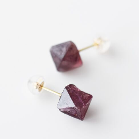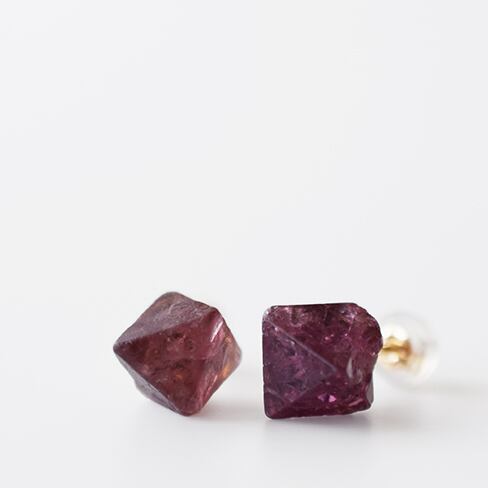 深いつややかな赤色が印象的なスピネルの原石ピアス。