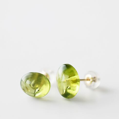 つるりとしたフォルムと澄んだグリーンが美しいペリドットのピアス